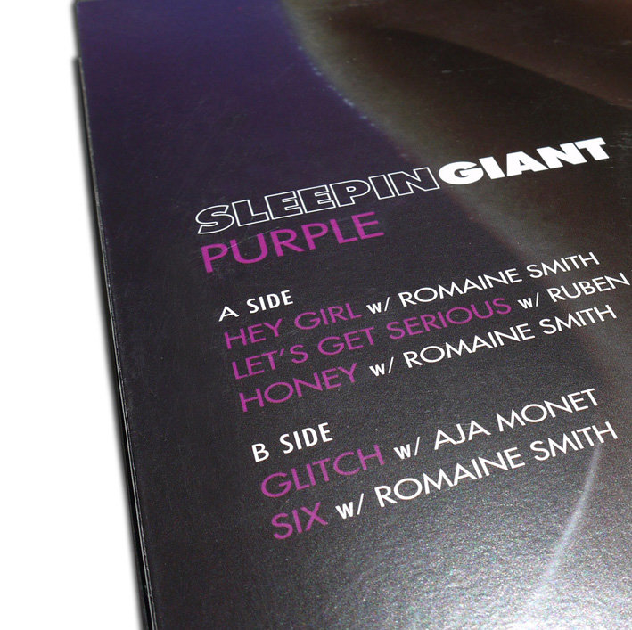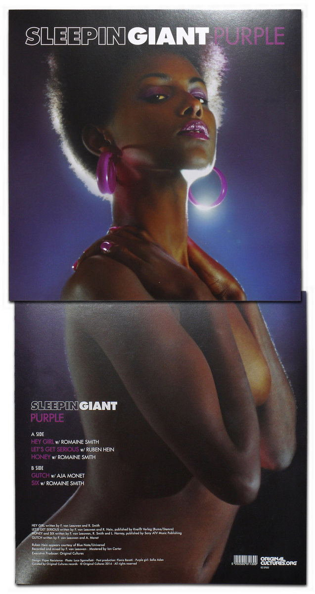 Purple has been two years in the making, a journey that began with the track Glitch written with NYC-based poet Aja Monet. It was on the strength of this demo that Original Cultures convinced Sleepin Giant to put together a whole EP of his own soul music. Another two vocalists were added to the mix: Bristol's Romaine Smith, a young singer full of promise who has worked primarily with Typesun, and Amsterdam's Ruben Hein, signed to Blue Note and one of Holland's most striking voices.